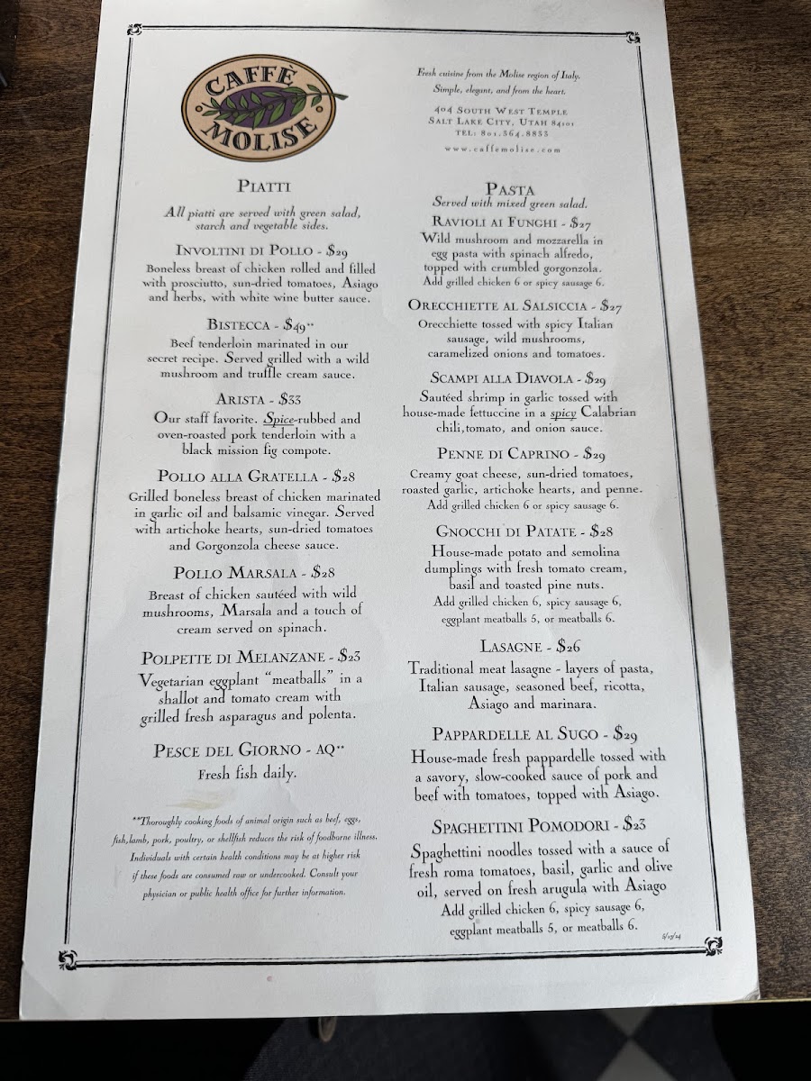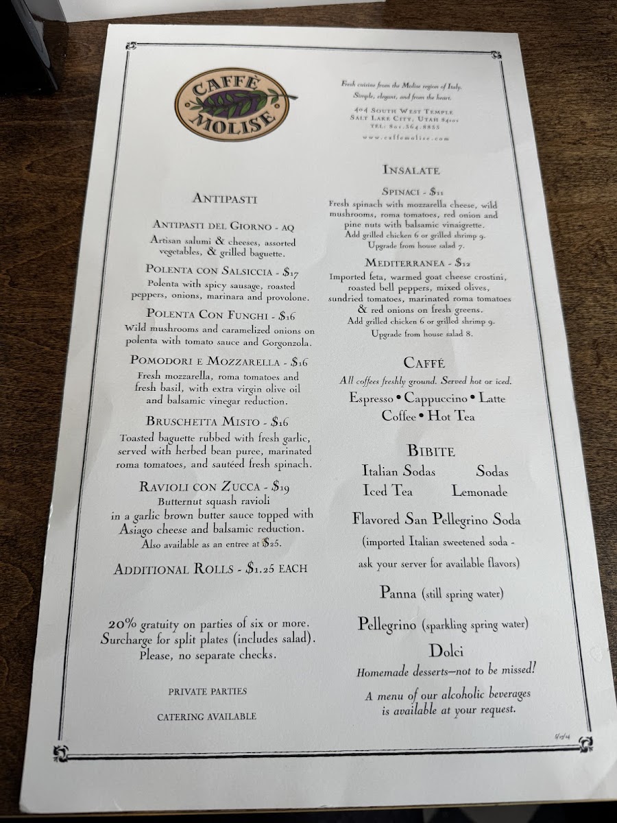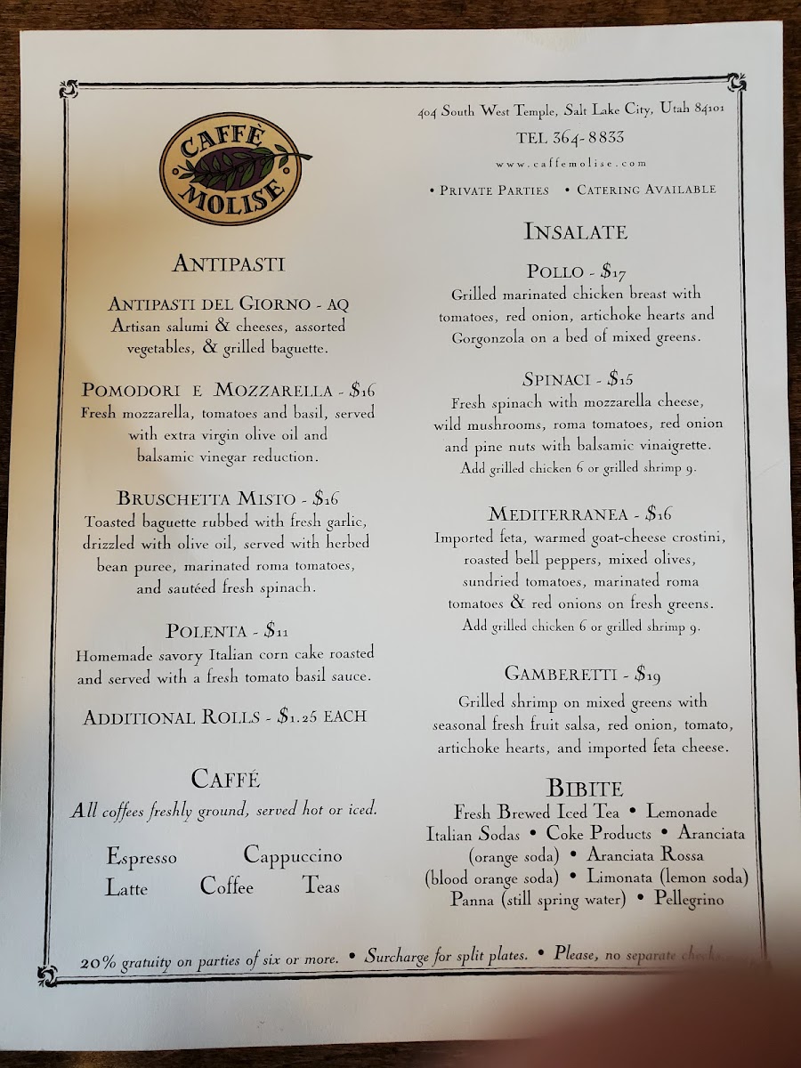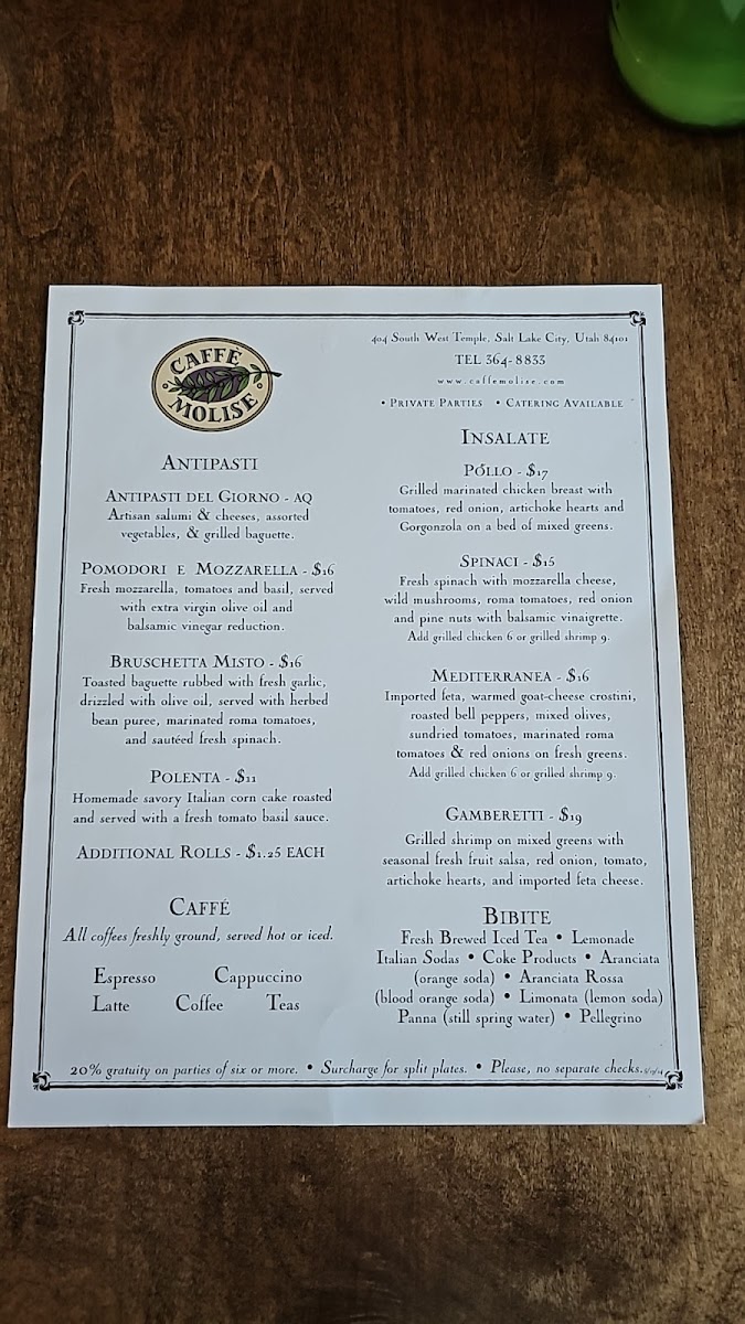 Welcome to Caffé Molise, a cornerstone of Italian cuisine nestled in the heart of Salt Lake City at 404 S W Temple St. This exquisite restaurant seamlessly combines a rich culinary tradition with a warm, inviting atmosphere that makes for an unforgettable dining experience.