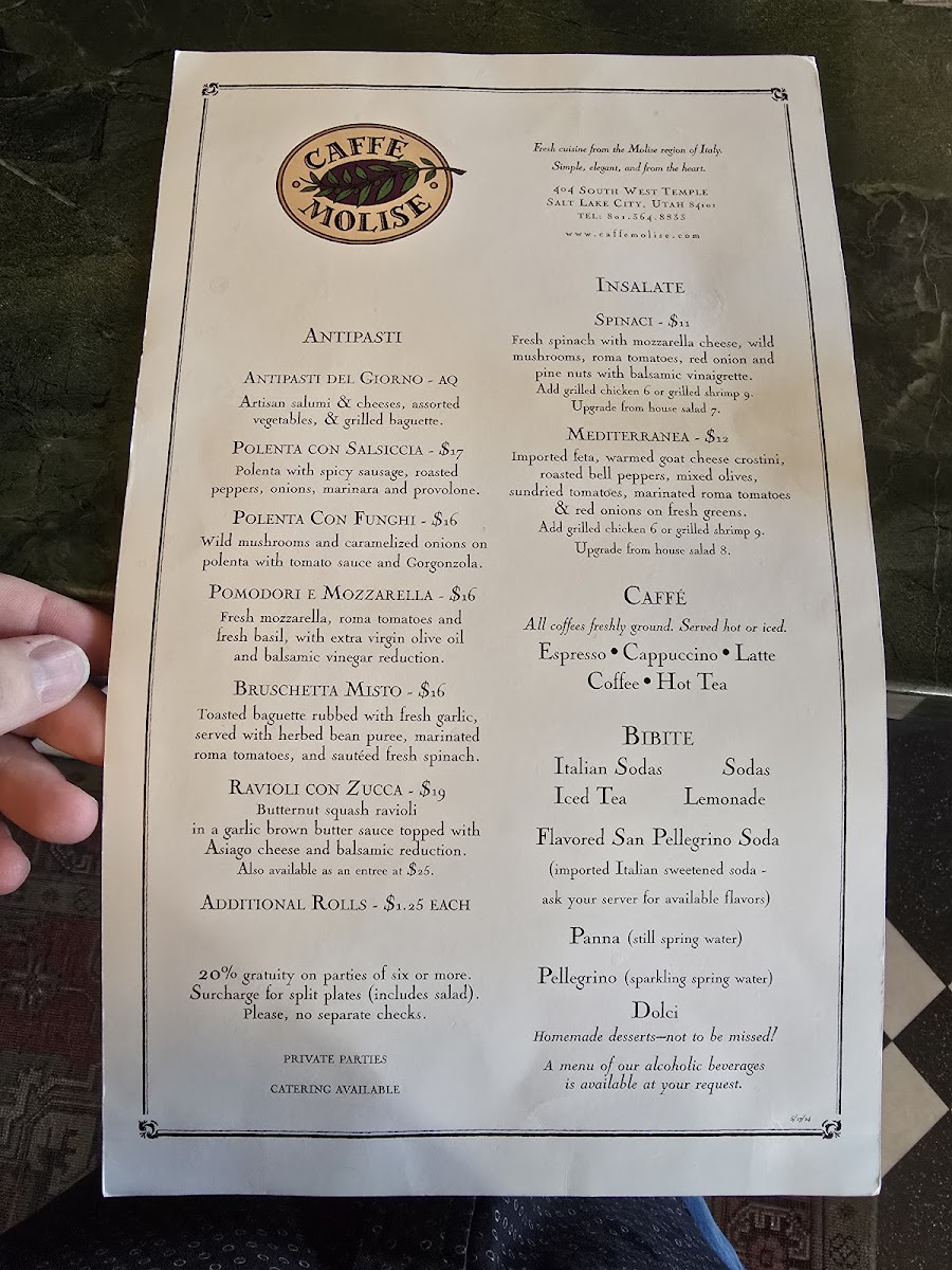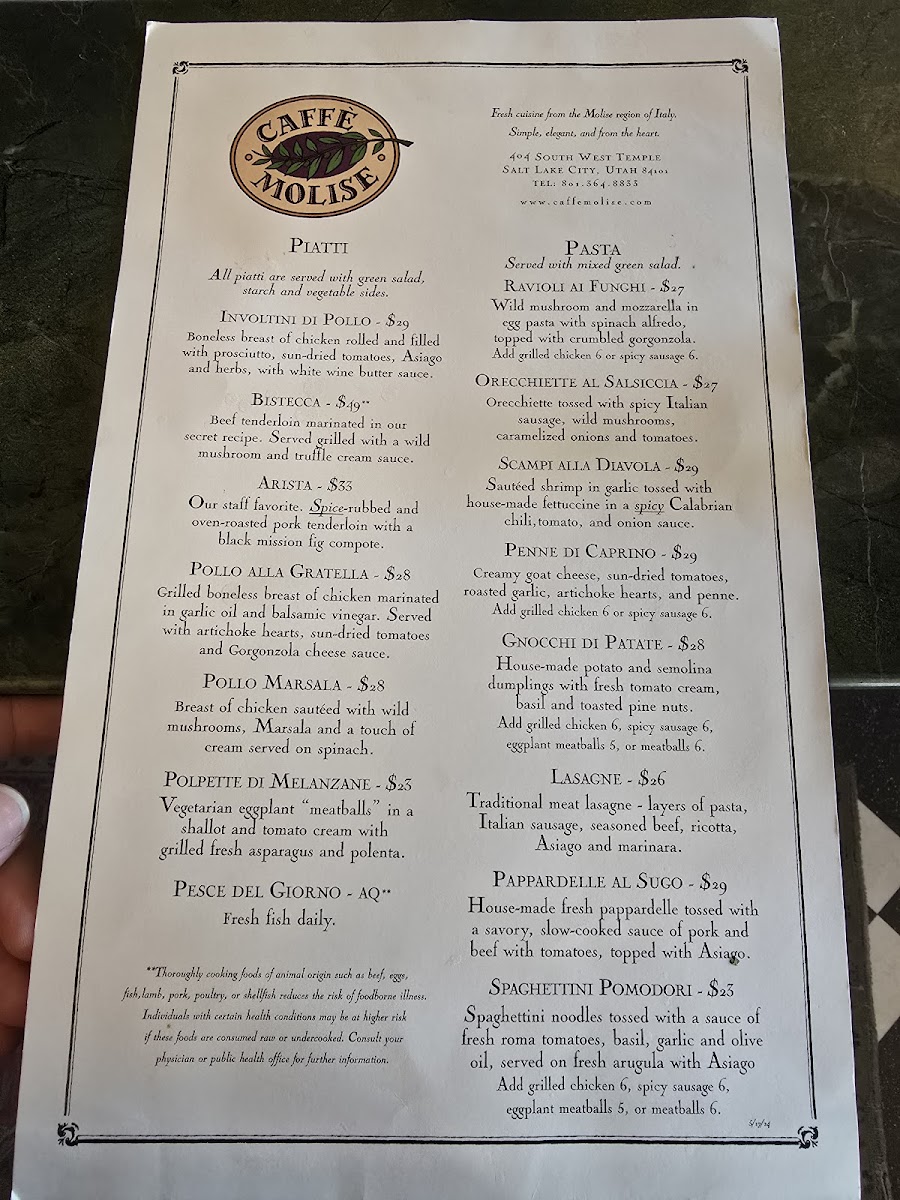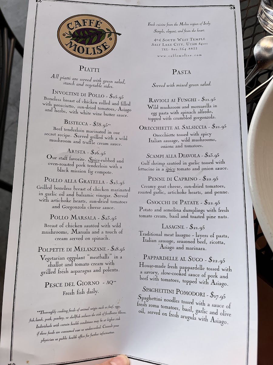 Welcome to Caffé Molise, a cornerstone of Italian cuisine nestled in the heart of Salt Lake City at 404 S W Temple St. This exquisite restaurant seamlessly combines a rich culinary tradition with a warm, inviting atmosphere that makes for an unforgettable dining experience.
